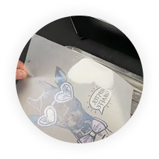 S toploto in pritiskom se motiv prenese na izbrani tekstil.