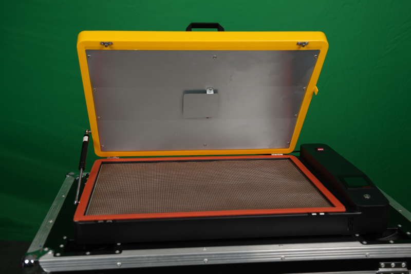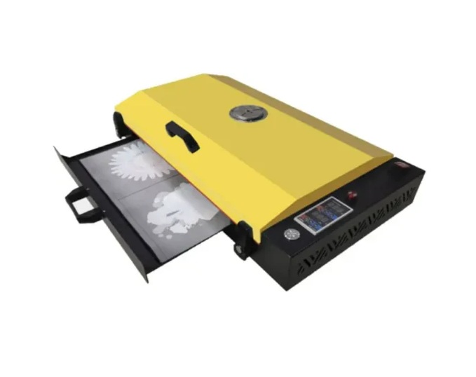 Kompaktna profesionalna DTF pečica zagotavlja enakomerno sušenje in fiksiranje motivov za natančne, trpežne in visokokakovostne prenose na tekstil.