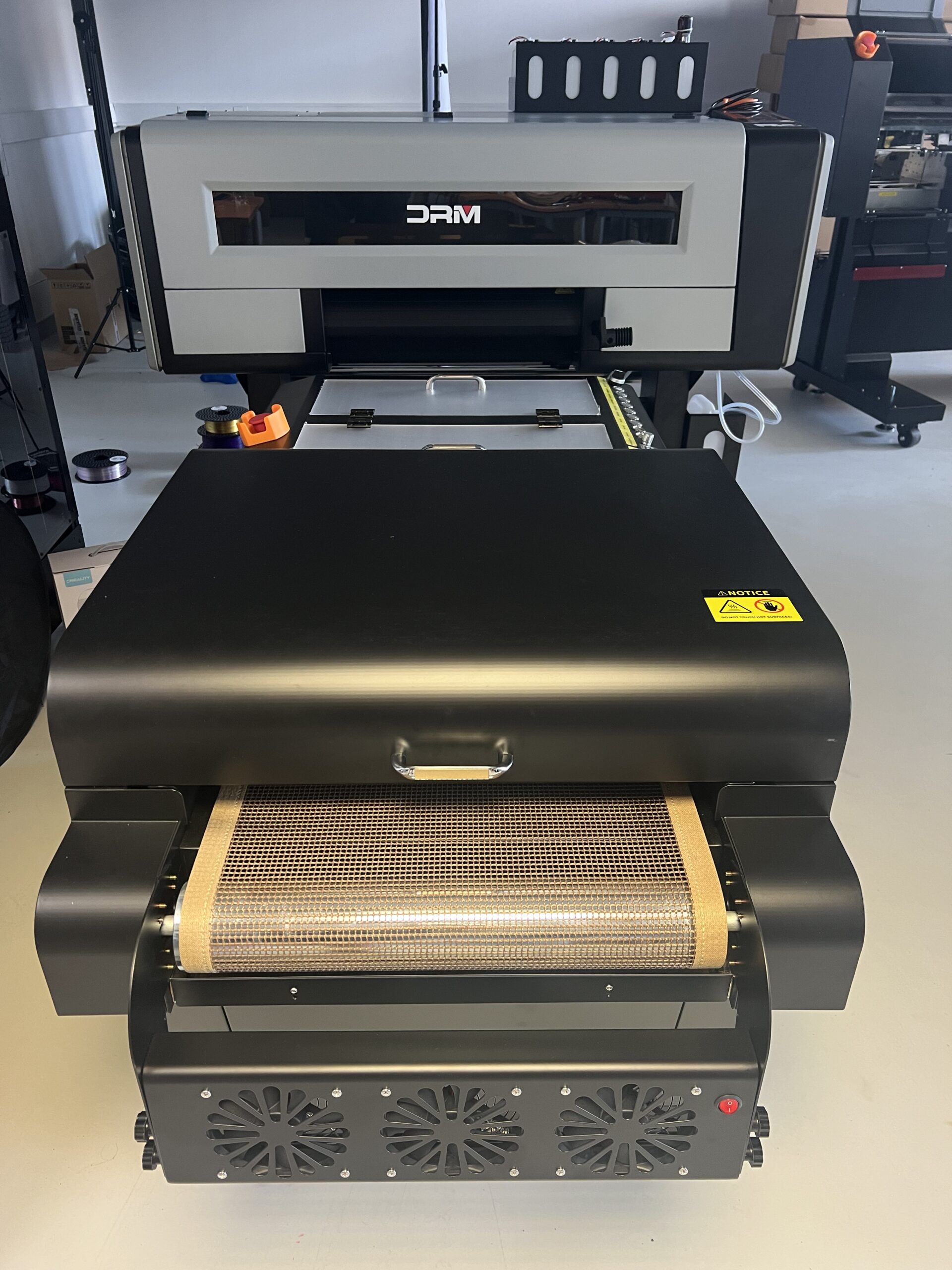 Profesionalni DTF tiskalnik 42 cm z 2× EPSON i3200 glavama za manjše in večje serije DTF preslikačev. Ima cirkulacijo in mešanje bele barve za stabilen izpis, po želji pa ga nadgradite z avtomatskim tresalnikom z vakuumsko mizo in vračanjem prahu. Nudimo montažo, servis in rezervne dele na zalogi ter predstavitev v Ljubljani.