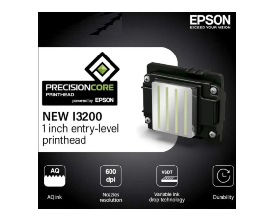 DTF tiskalna glava I3200 (I3200-A1) je visoko zmogljiva industrijska glava za DTF printerje in druge sisteme z vodnimi (aqueous) črnili, zasnovana za hitro produkcijo, ostre detajle in stabilno kakovost izpisov. Temelji na tehnologiji PrecisionCore MicroTFP (MEMS + thin-film piezo), ki omogoča visoko gostoto šob, natančno odlaganje kapljic in zelo dobro ponovljivost tiska.